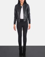 Bliss Black Leather Bomber Jacket (Women)