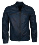 If you are a Cafe Racer biker then this blue leather biker jacket for men is perfect for you. With this Distressed Leather Biker Jacket in a stunning shade of blue, make a strong statement. This jacket’s high-quality sheepskin leather construction emanates rough elegance and toughness. The plush viscose lining offers the utmost comfort as you travel or stroll across the city. The jacket adds an edgy and fashionable edge to your attire with its distinctive design components and padded shoulders and sleeves. Functionality and a stylish appearance are both provided by the front zip fastening. The two zippered hand pockets and two zippered chest pockets help you stay organized while letting you safely keep your things while traveling. This distressed leather biker jacket is a must-have addition to your collection, regardless of whether you enjoy riding motorcycles or are just searching for a stylish outerwear alternative.
