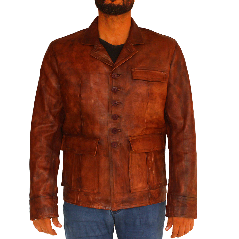 Men’s Motorcycle Leather Jacket Costume This men’s motorcycle leather jacket is just the perfect biker outfit for motorcycle riders. We use genuine and top-quality cowhide leather in the making of this leather jacket. The featured logo on the back makes it just the perfect jacket for you. We also use soft polyester lining in the inner part of the jacket. To make it a comfortable motorcycle jacket outfit. The biker jacket has a zipped front closure with padded style sleeves & shoulders.