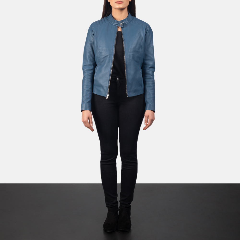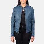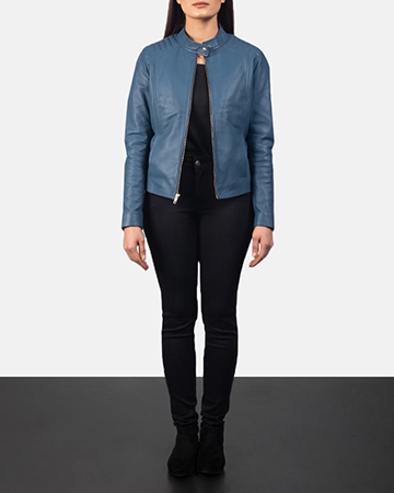 Kelsee Blue Leather Biker Jacket