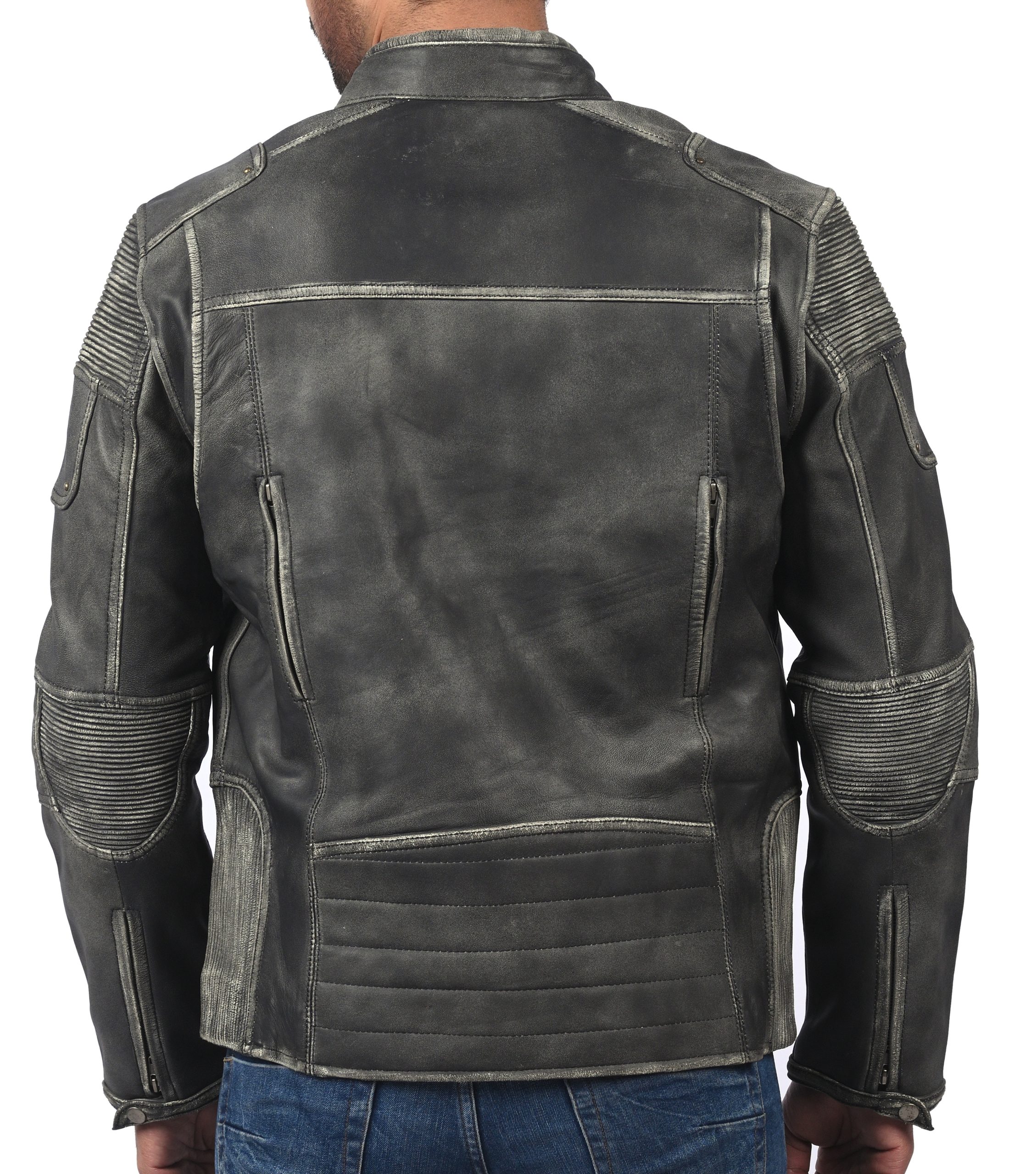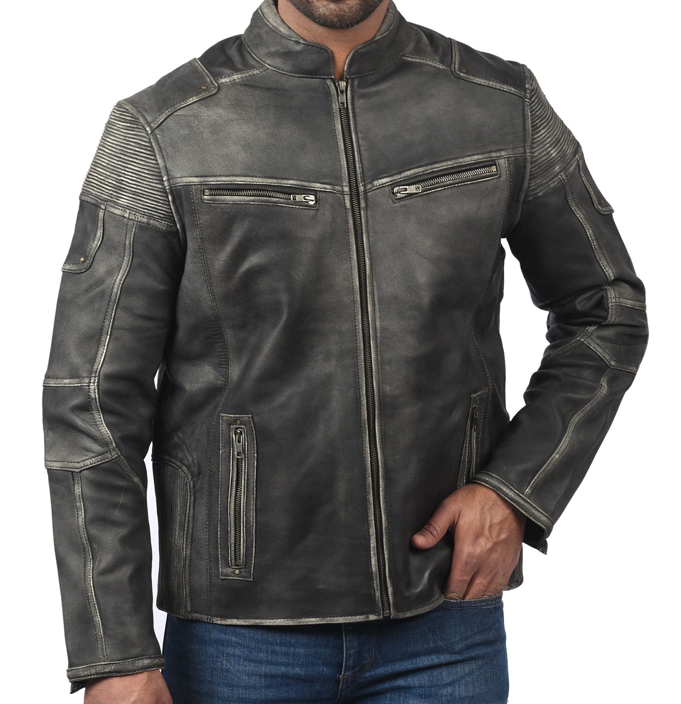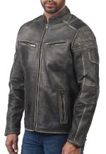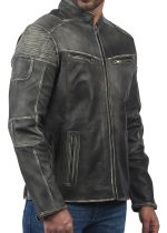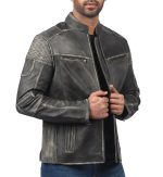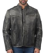 Men’s Distressed Cafe Racer Gray Leather Jacket