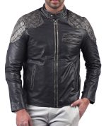 Men’s Biker Black Distressed Leather Jacket