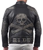 Home » Shop » Men’s Embossed Skull & Crossbones Leather Biker Jacket