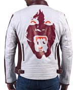 If you want to look your best on Halloween then you should grab this Leather Jacket For Halloween Costume Ideas. The leather jacket is specially designed for our customers. While crafting this jacket we concentrate on Halloween Costume Ideas so you see an elegant print on the back of the jacket. Yes, they will give you a unique look to grab your attention at Halloween parties. The White And Maroon Jacket is made up of genuine leather and inside viscose lining. The soft viscose lining will keep you comfortable so you can wear it for a long time. And it also has Four outside pockets for a stunning look and it will also help you to keep your essentials safe. A Cute Halloween Face Is PrintedOn The Back Of The Jacket