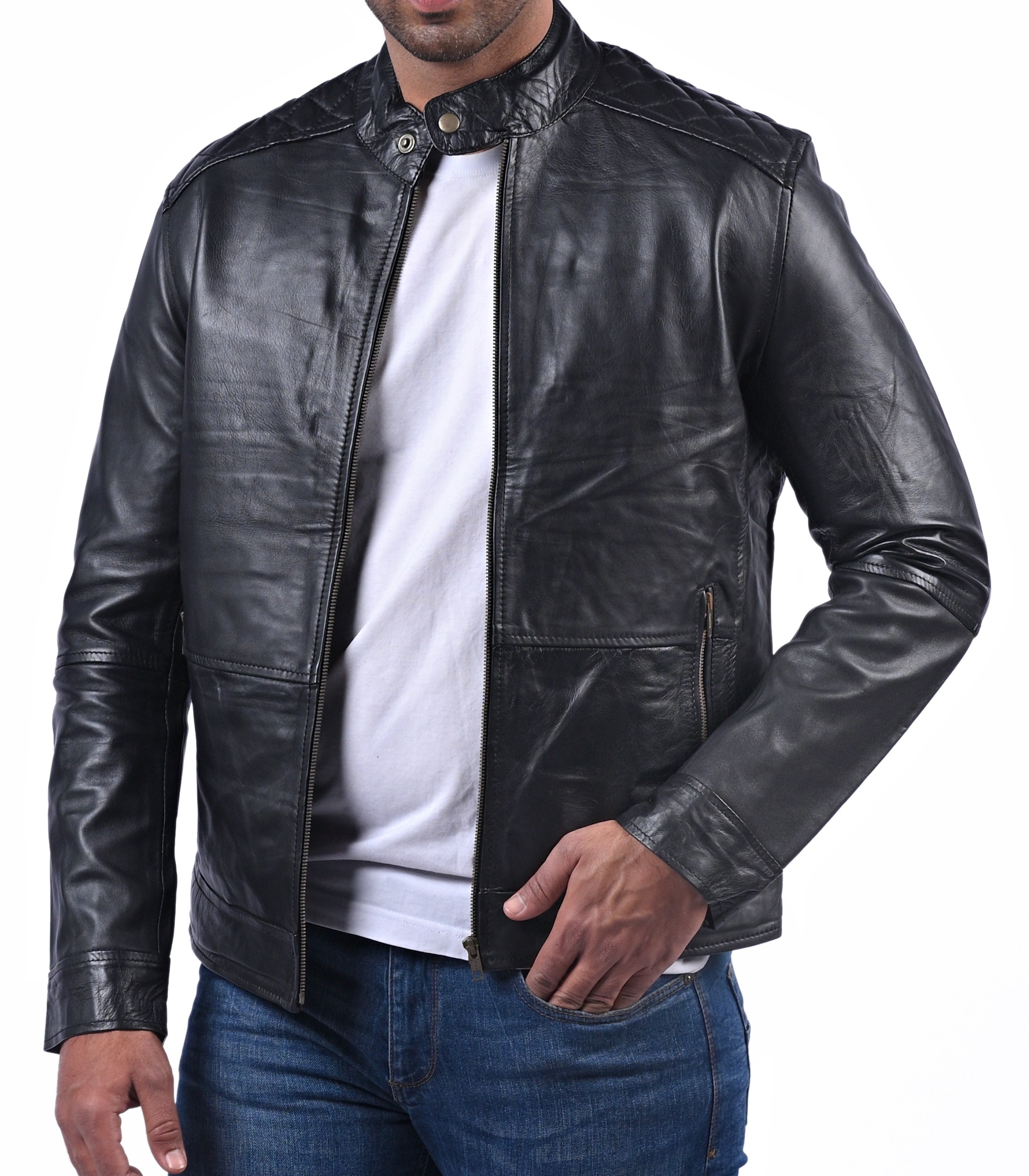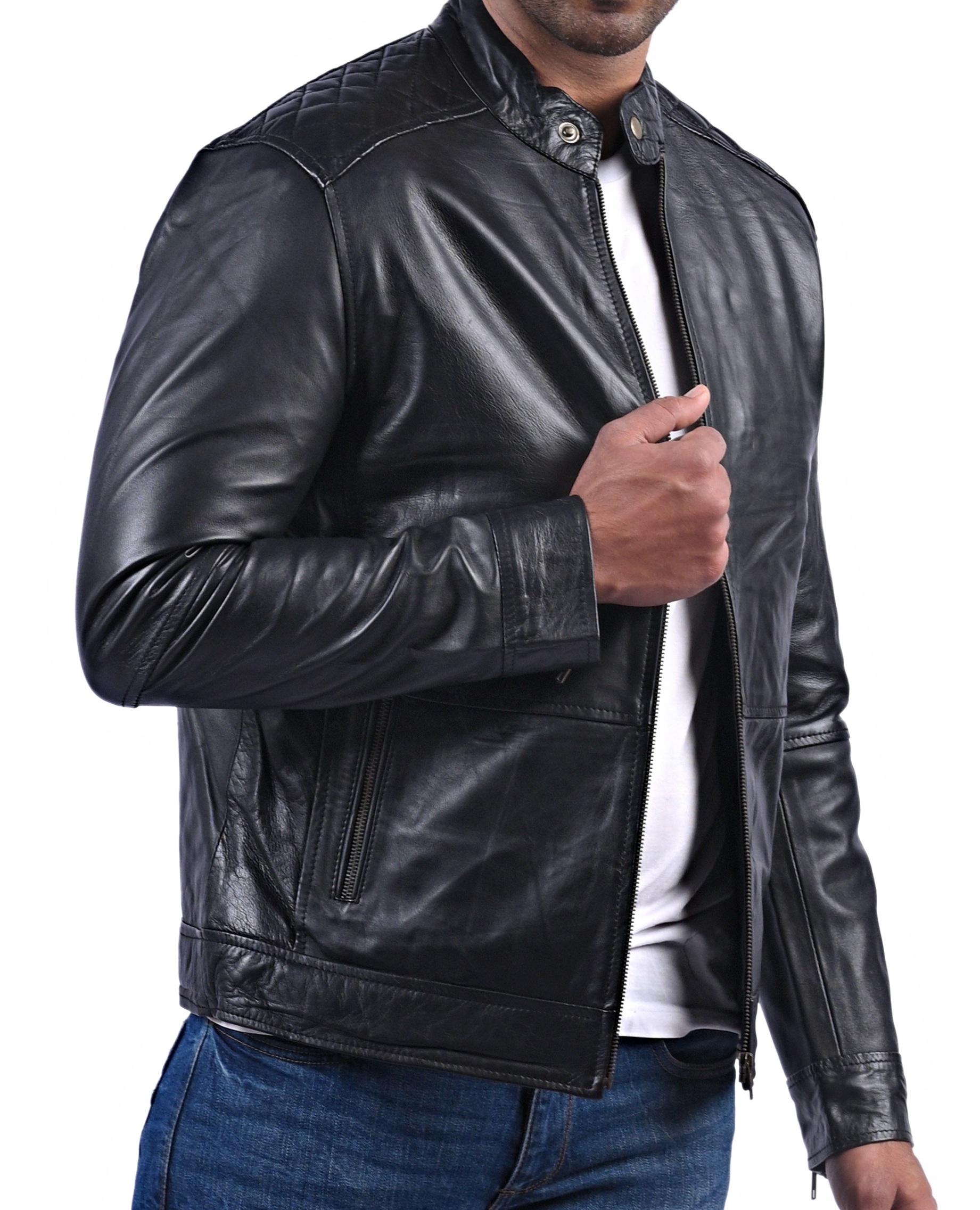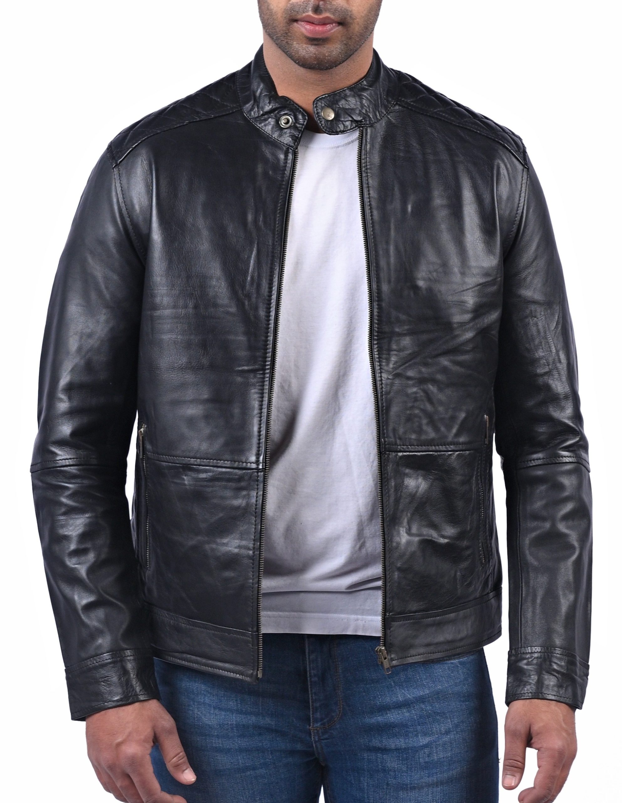 With the Black Sheep Leather Jacket, enter the world of style. This jacket, which was made from real sheep leather, exudes refinement. Its sleek black color, together with the quilted viscose lining and a round collar with buttoned accents, create an alluring appearance that deftly combines modernity with classic elegance. Two front waist zip pockets and two interior pockets combine functionality and style to give you plenty of room for your things. The eye-catching American flag with a skull pattern that is exhibited on the back of this jacket really makes a statement since it exudes boldness and edginess. This jacket is the height of fashion, allowing you to leave a lasting impression everywhere you go. It has long sleeves and a trendy design.