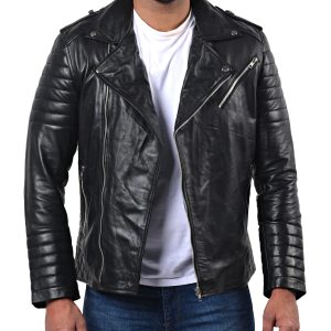 Men’s Motorcycle Leather Jacket Costume This men’s motorcycle leather jacket is just the perfect biker outfit for motorcycle riders. We use genuine and top-quality cowhide leather in the making of this leather jacket. The featured logo on the back makes it just the perfect jacket for you. We also use soft polyester lining in the inner part of the jacket. To make it a comfortable motorcycle jacket outfit. The biker jacket has a zipped front closure with padded style sleeves & shoulders.