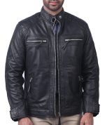 Men's Biker Black Distressed Leather Jacket