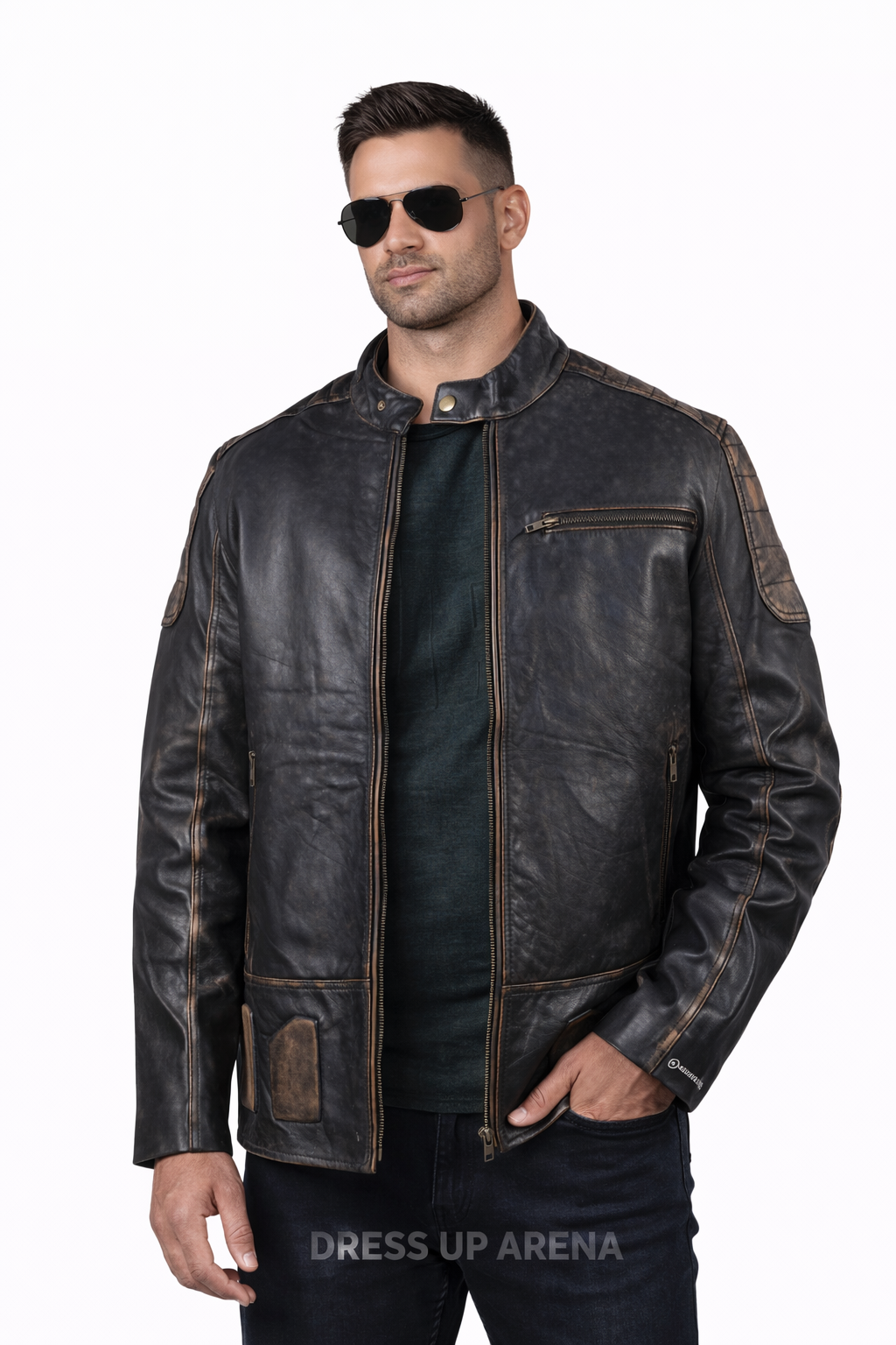 A black distressed leather jacket is the easiest way to add character to your daily outfits, and this biker style is made to do exactly that. The finish has a worn-in, vintage look that feels bold without being loud. It works for casual days, nights out, and everything in between—especially when you want something that looks premium but still rugged.