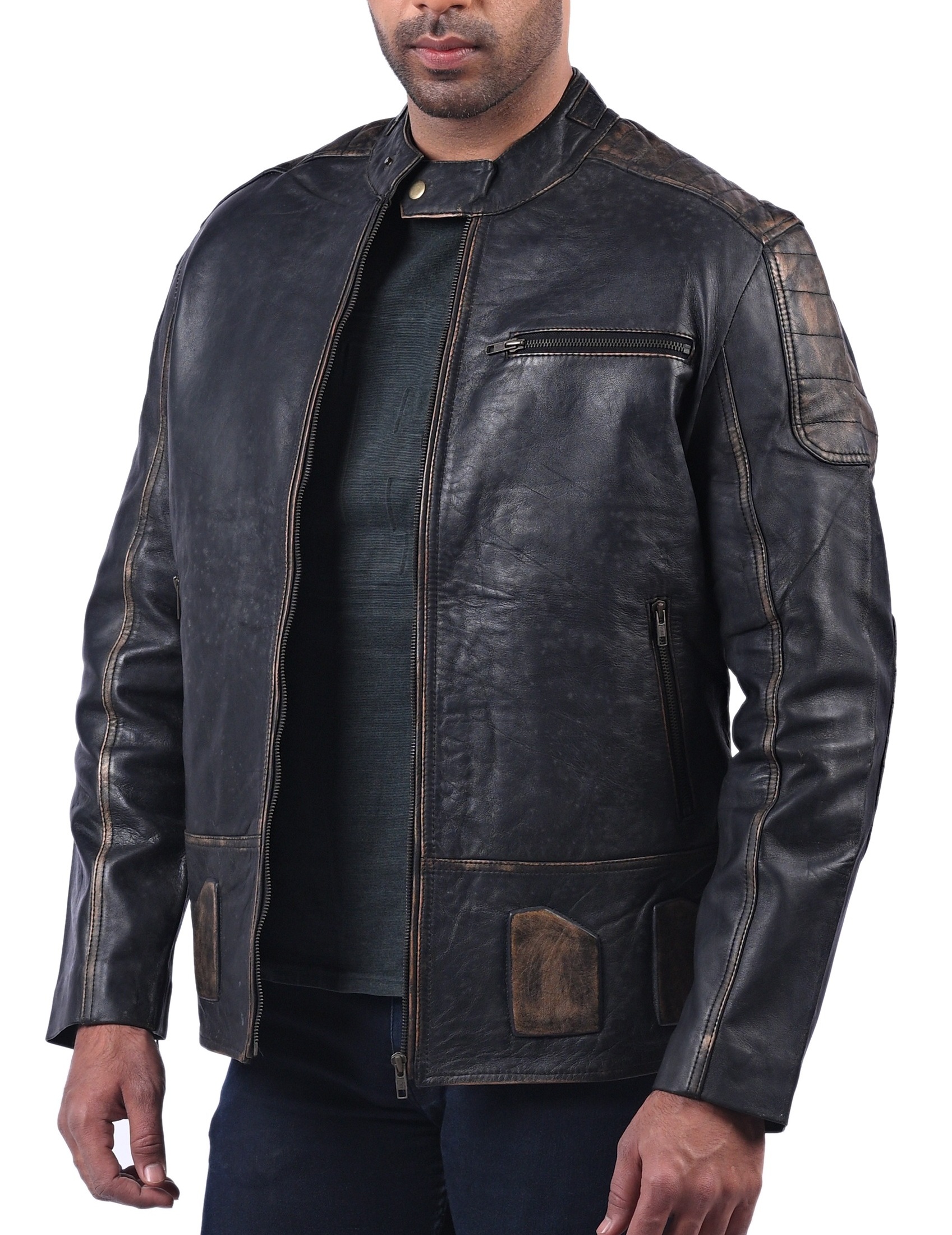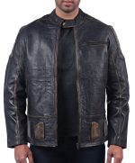 Men’s Biker Black Distressed Leather Jacket Biker Leather Jacket for Men