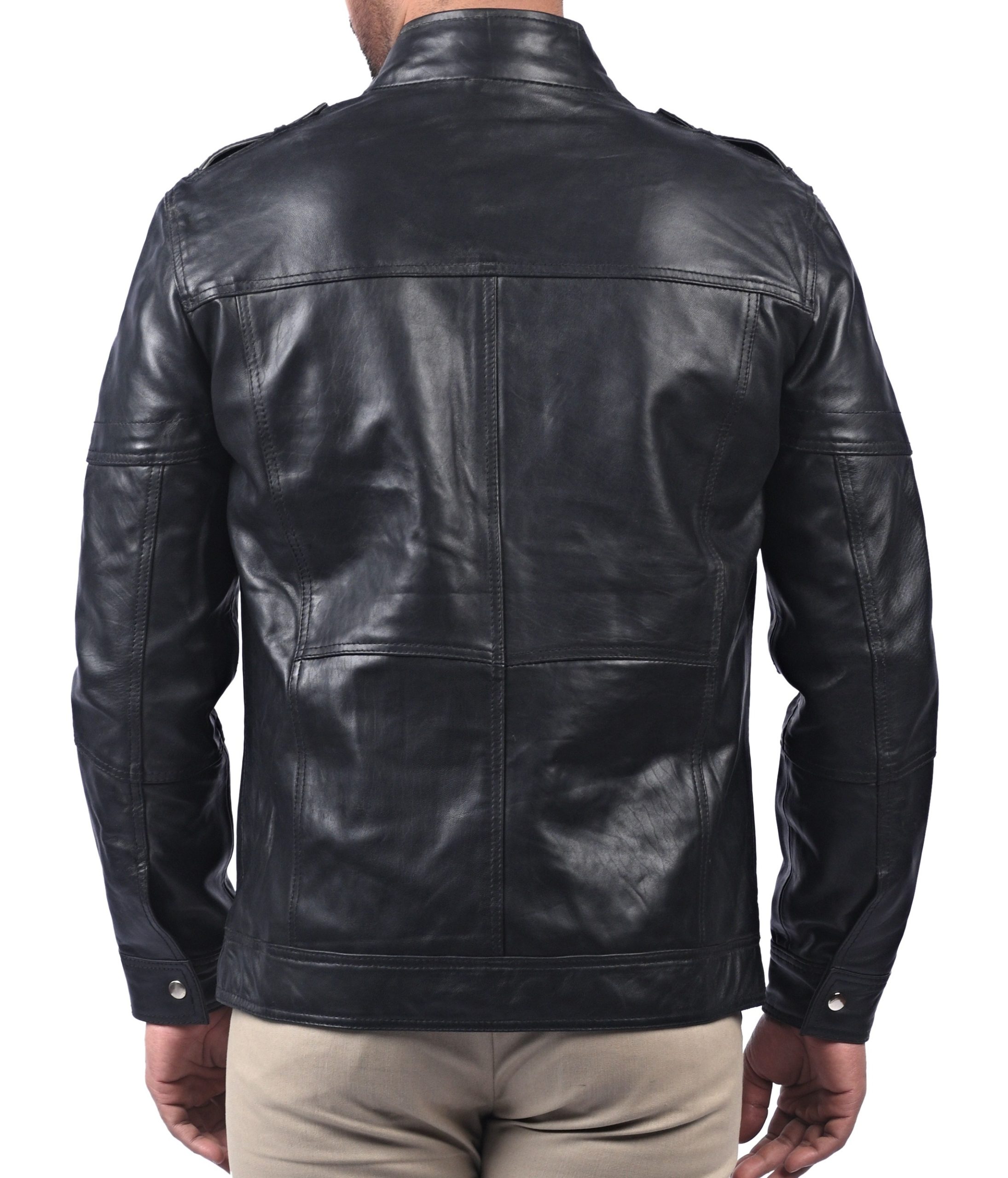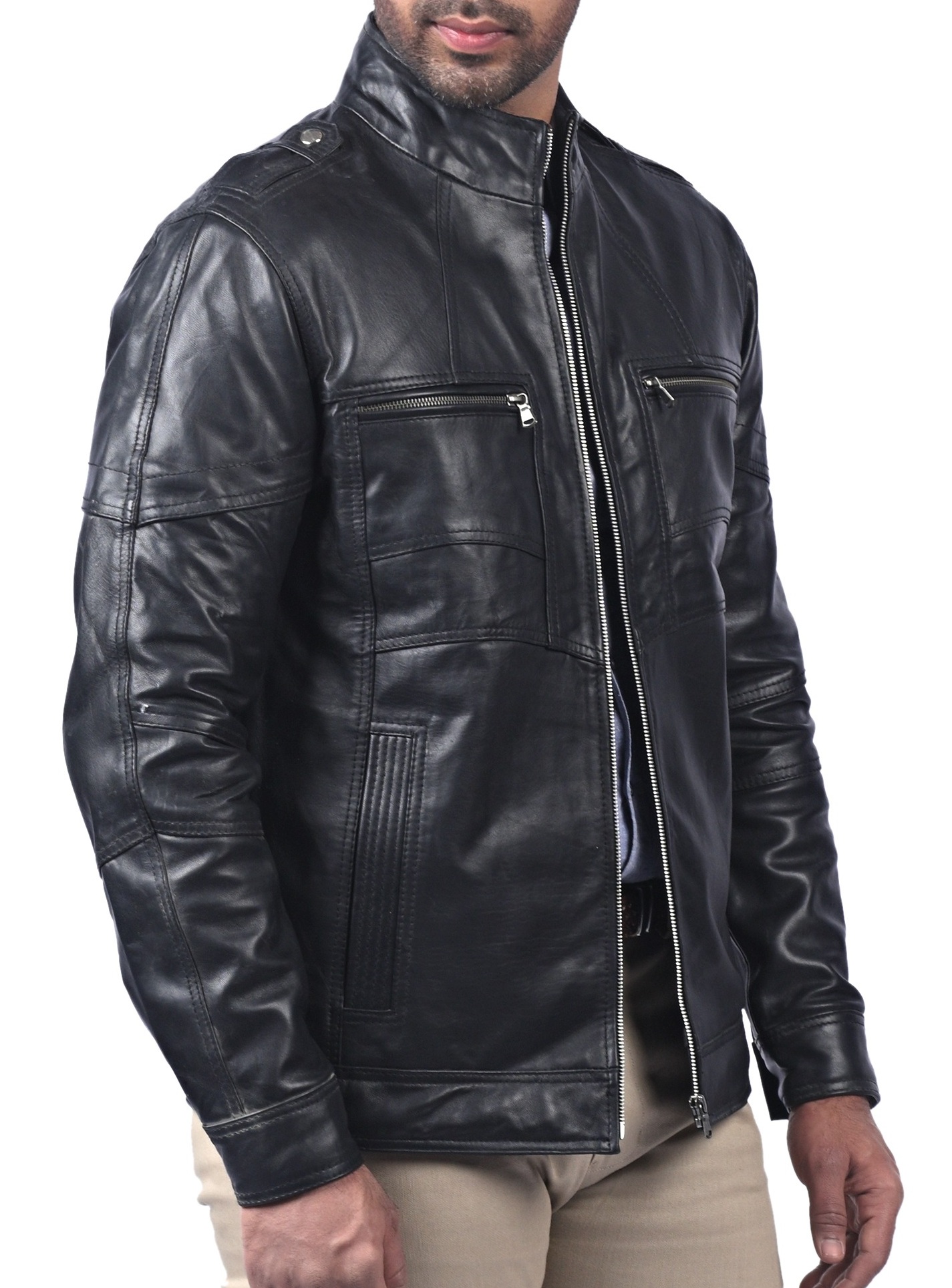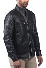 Meet your new everyday essential: the mens black sheep leather biker jacket designed for a clean, streamlined look with premium comfort. Crafted from genuine sheep leather in classic black, it delivers a refined biker silhouette that works for daily wear, evenings out, and smart-casual styling. Inside, the quilted viscose lining adds warmth and a smoother feel, making layering effortless across seasons. A stand collar sharpens the profile, while the front zip closure keeps the finish modern and minimal.