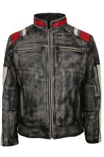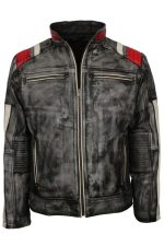Men’s Stylish Retro Distressed Black Leather Cafe Racer Motorcycle Jacket