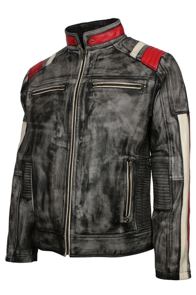 For all the retro leather jacket lovers. We are offering this men’s distressed black leather motorcycle jacket. Made from real sheepskin leather, this cafe racer-style leather jacket enhances your appearance. The jacket is of distressed black color with grey shades over it. The cafe racer distressed jacket has a stand-up style collar. Furthermore, the biker outfit has a zip closure on the front. There are two hand pockets and two chest pockets in the leather jacket. Buy now and get free of cost delivery worldwide.