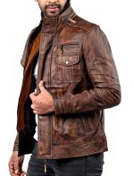 Introducing our Men’s Casual Biker Style Leather Jacket, created to add a dash of tough sophistication to your ensemble. Because it is made entirely of real sheepskin leather, it is exceptionally durable and of the highest quality. The interior viscose lining guarantees maximum comfort and breathability, while the exterior material highlights the leather’s inherent beauty and texture. A strong zip clasp on the front closure ensures a comfortable and fashionable fit. The stand collar gives the whole appearance a sense of edginess, and the padded shoulders help to create a strong, masculine profile. Our Casual Biker Style Leather Jacket for Men is the ideal option for individuals who value both style and functionality, whether you’re riding a motorbike or simply looking for a fashion-forward statement item.