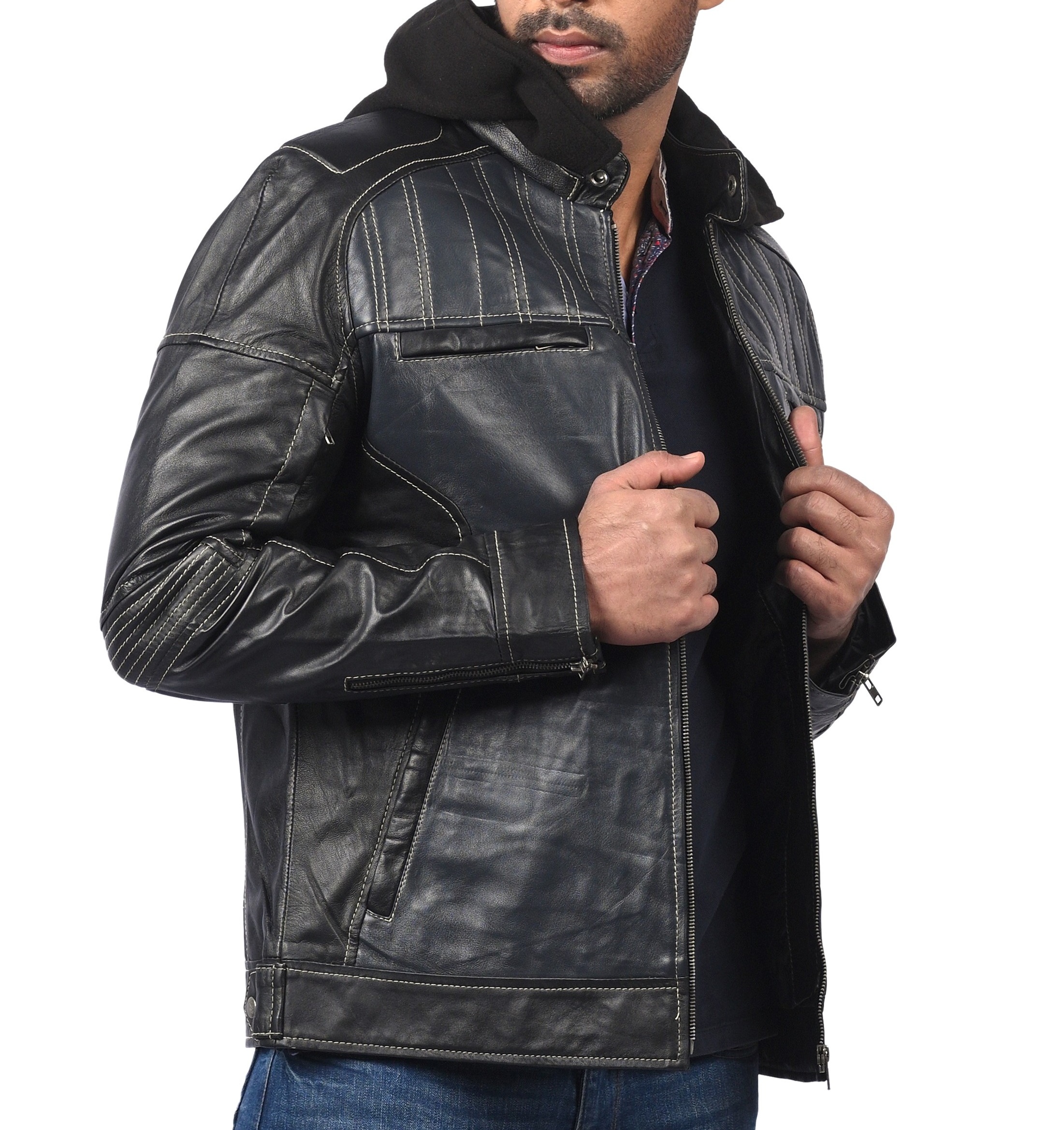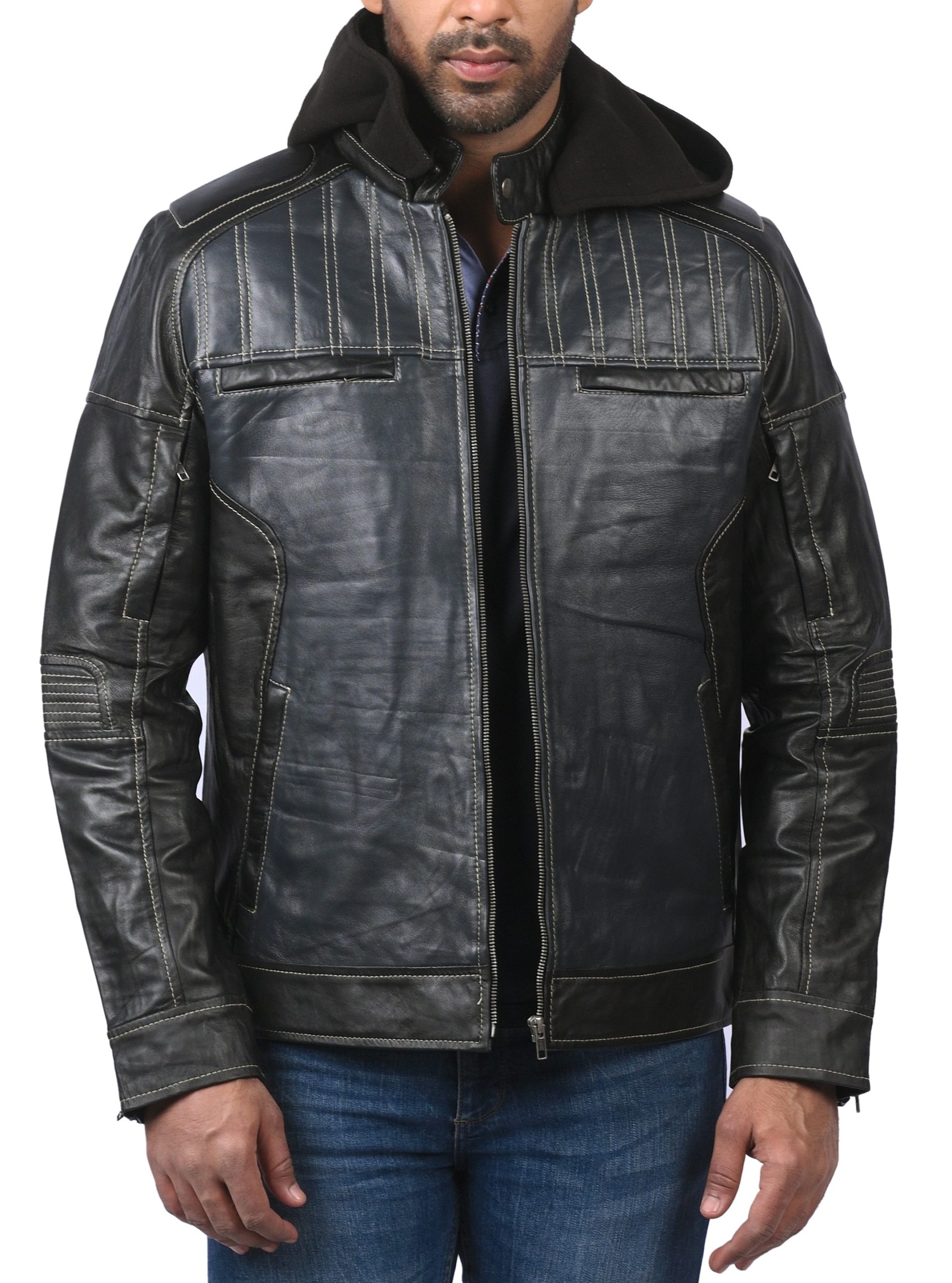 Home » Shop » Men’s Vintage Hooded Leather Jacket