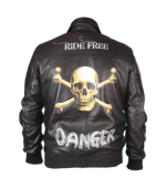 Let your distinct sense of style shine through in the Skull Ride Digital Print Biker Sheep Leather Jacket. This jacket is made from premium sheepskin leather, which is soft and opulent to the touch. The digital Skull Ride Danger print on the front and back gives a distinctive and attention-grabbing feature, while the black color lends a sleek and classic touch. A front zip allows for a safe and fashionable fit.