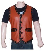 Built for bold biker styling, this tan leather vest for men pairs a warm tan finish with contrast black trim for a strong, structured look. The clean V neck keeps the front sharp, while the large back patch panel adds instant attitude. It is easy to wear over a tee, long sleeve top, or hoodie.