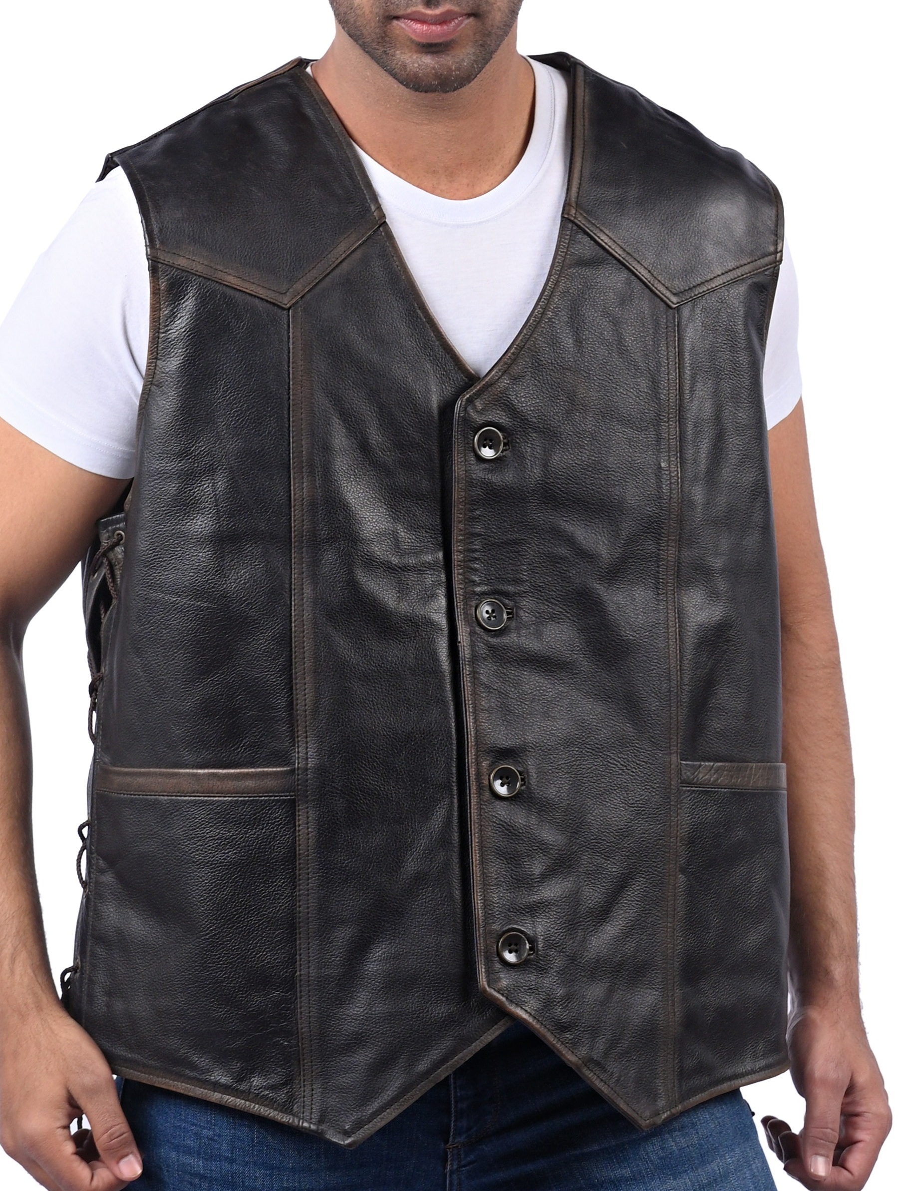 - Buttoned front closure for classic vest styling