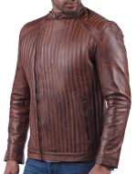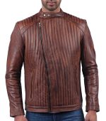 Triple Stitch Double Breast Distressed Brown Leather Jacket