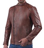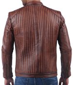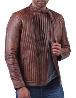 WAVY STITCH TAN WAXED LEATHER JACKET (MEN)