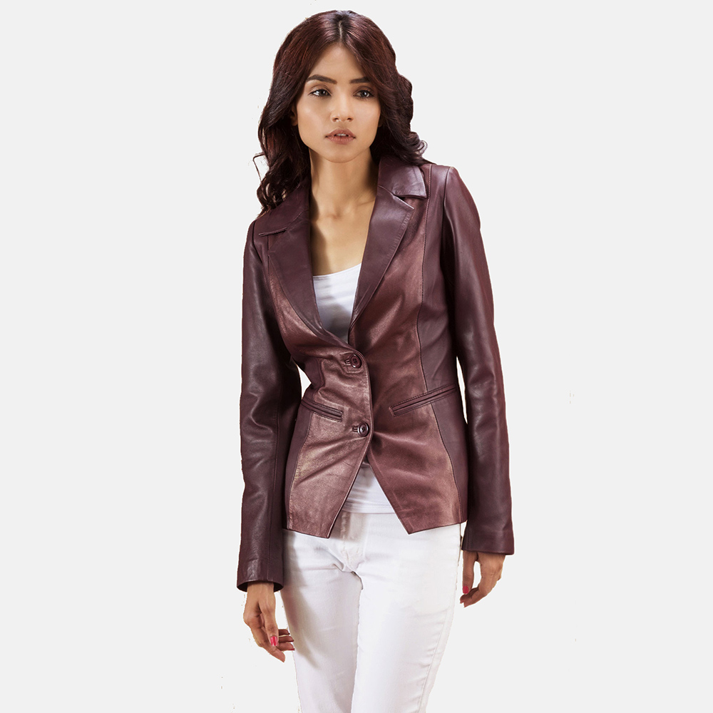 Home » Shop » Ruby Metallic Maroon Leather Blazer