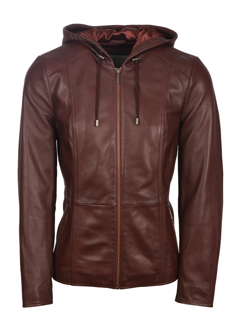 Abbeyville Hooded Leather Jacket in Burgundy
